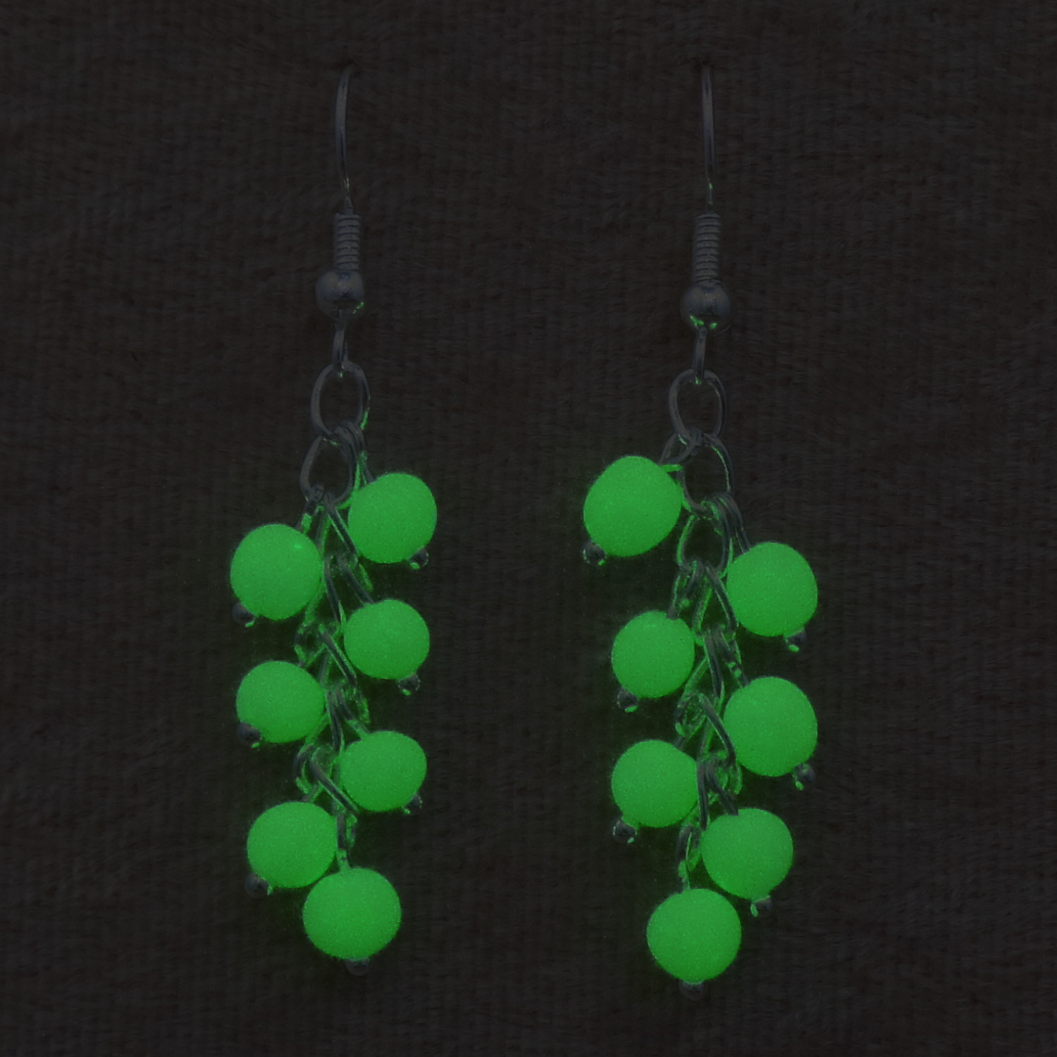 These unusual earrings will look lovely in daylight and luminous at night.