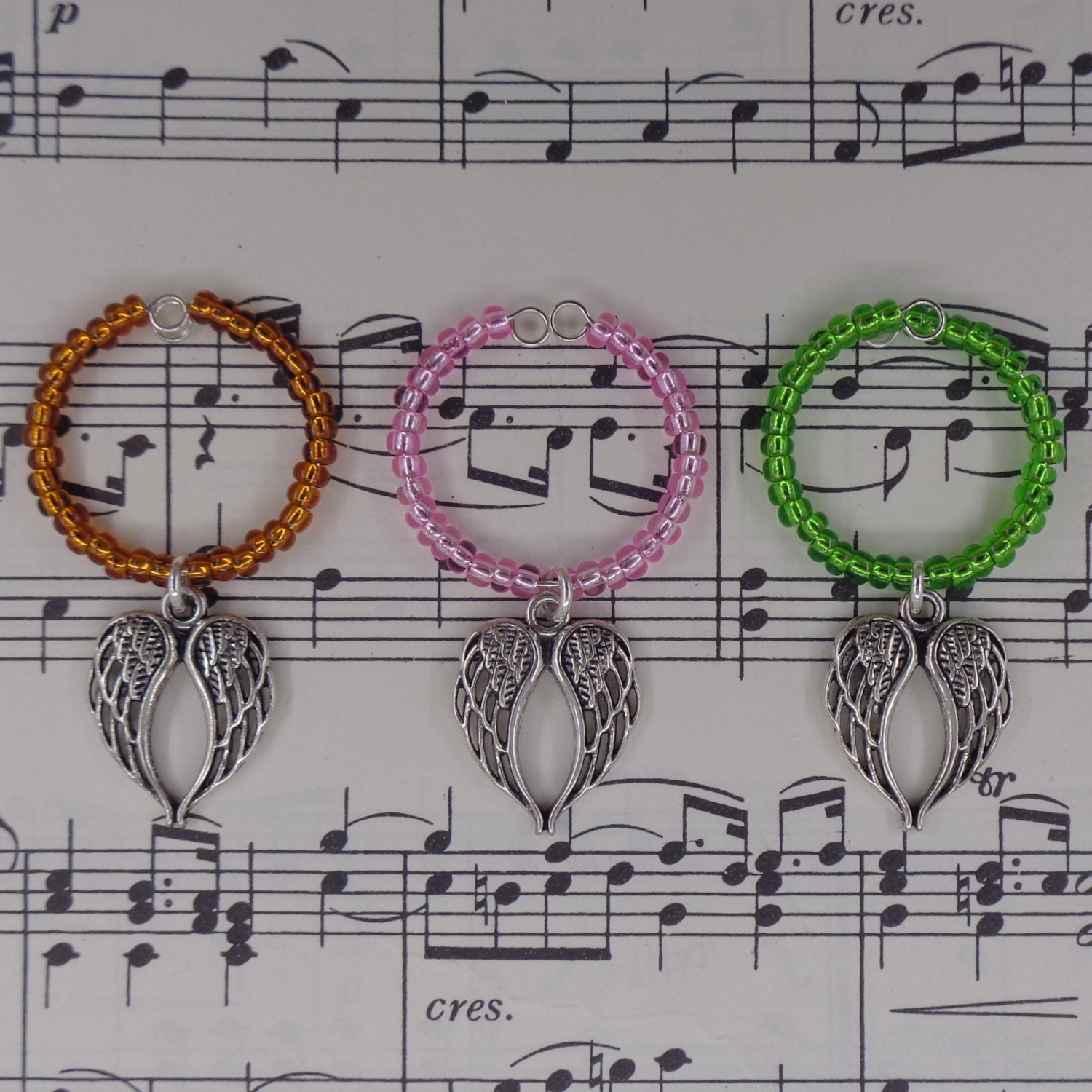 These angelic Wings Wine Glass Charms are a set of six colourful wine glass rings with angel wings charms upon them.